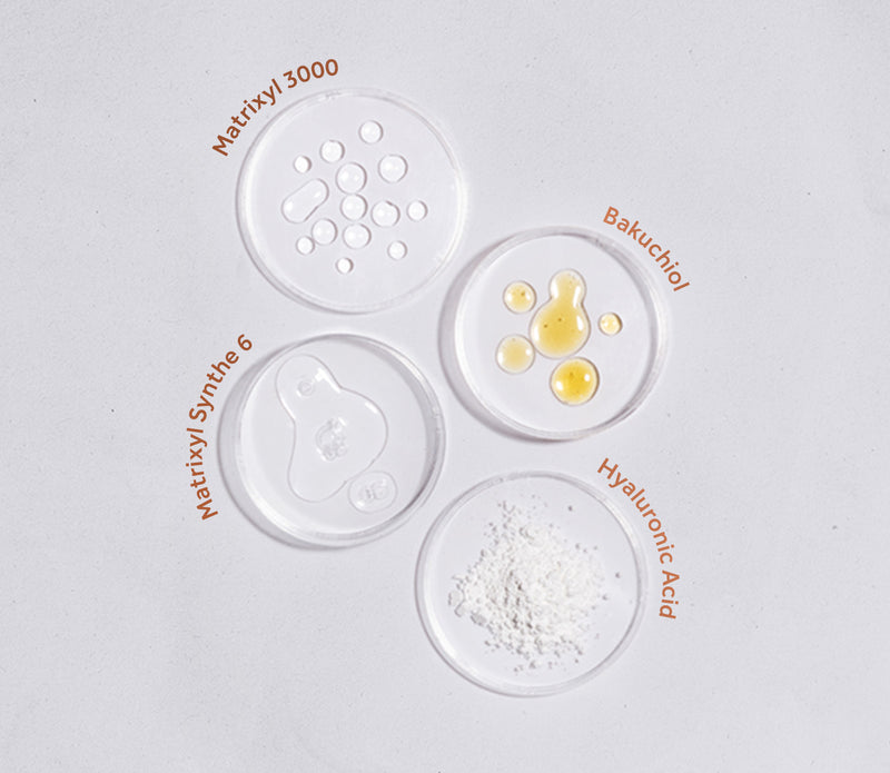 Collagen molecules are far too big to apply to your face and skin topically, so Maxerum boosts collagen production within the skin using key star ingredients: Matrixyl, Bakuchiol and hyaluronic acid.